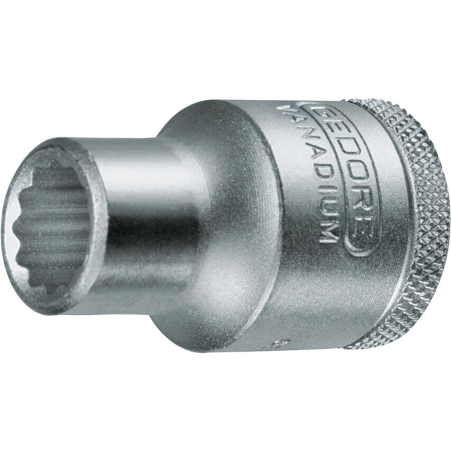 1/2" Square drive socket with ball retaining groove, Hand-operated, knurled grip, Vanadium steel, polished, chrome-plated, DIN 3124, ISO 2725-1