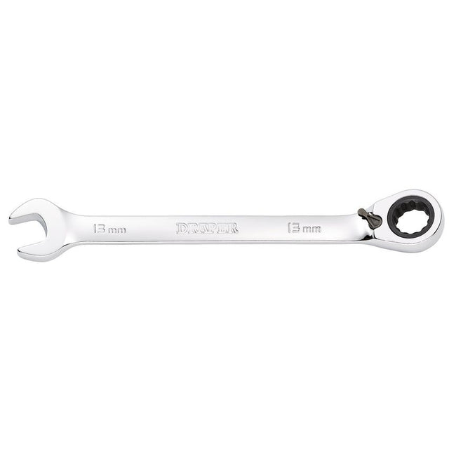 Open end set at 15. Draper HI-TORQ ratchet ring end offset at 15. With forward/reverse direction changer on ring end - only 5 movement required to turn fastener, especially useful in confined spaces. Forged from chrome vanadium steel, hardened, tempered, chrome plated and fully polished throughout.