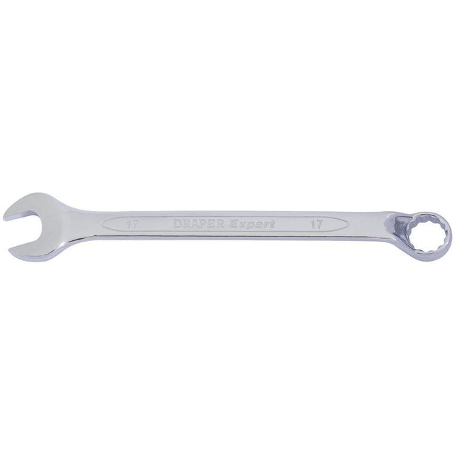 Expert Quality, with Draper Expert HI-TORQ deep offset ring end cranked at 15. Open end set at 15. Long pattern forged from chrome vanadium steel, hardened, tempered, chrome plated and fully polished throughout.