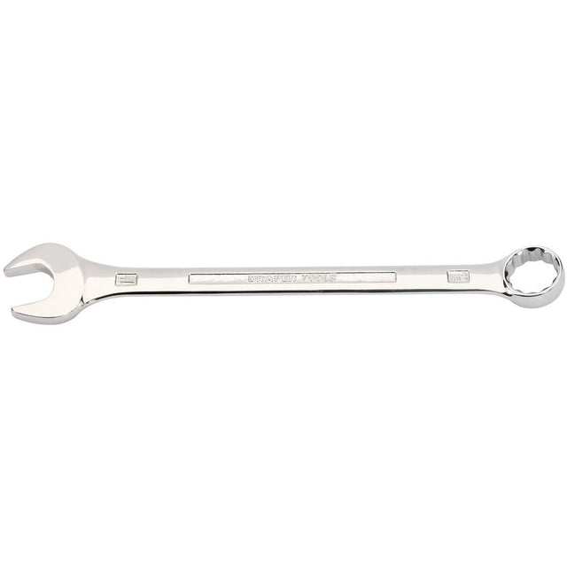 Expert Quality, forged from chrome vanadium steel hardened, tempered and chrome plated for corrosion protection. Polished Draper HI-TORQ ring end offset at 15. Jaw offset at 15.