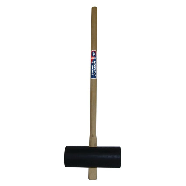 A heavy duty rubber striking tool for positioning/levelling stone paving slabs and kerbs, etc with less risk of chipping/cracking the stone in the process
