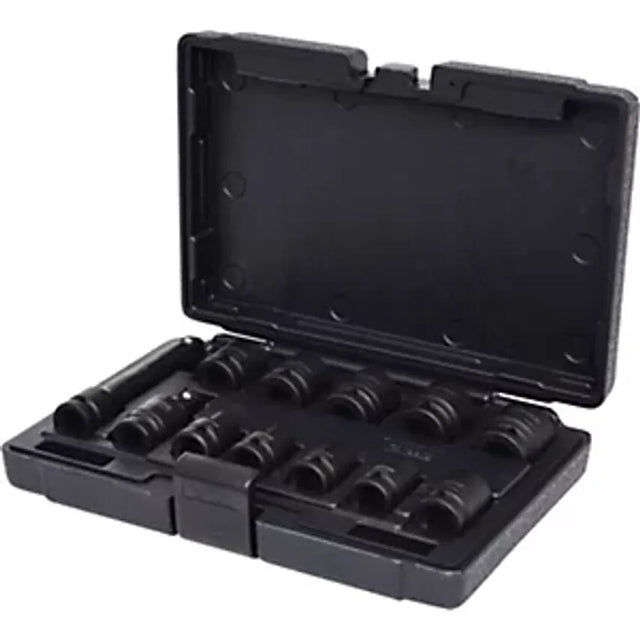 1/2'' impact socket set, short, hexagon, 12 parts. Supplied = assembled. Number of parts = 12 pcs. Model = hexagon. Conforms to = ISO 1174, DIN 3129, ISO 2725-2, DIN 3121. Weight = 2.4 kg. Square drive = 1/2''. Product type = impact sockets. Hexagonal. In accordance with DIN 3129/ISO 2725-2. Square socket in accordance with DIN 3121/ISO 1174. Short model. For machine activities. Phosphate coated. Chrome-molybdenum. In a sturdy plastic case.