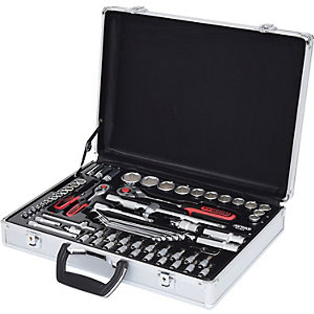 1/4'' + 1/2'' box spanner set, 70 parts, flank traction. Supplied = assembled. Number of parts = 70 pcs. Product type = box spanners. Hexagonal. FlankTraction profile. Chrome-vanadium. Matt satin finish. In an elegant aluminium case. Hexagonal. FlankTraction profile. Chrome-vanadium. The following tools are included: 1 x combination spanner, angled, 8 mm 1 x combination spanner, angled, 10 mm 1 x combination spanner, angled, 12 mm 1 x combination spanner, angled, 13 mm 1 x combination spanner, angled, 14 mm 1 x combination spanner, angled, 17 mm 1 x combination spanner, angled, 19 mm 1 x 1/2'' extension, 125 mm 1 x 1/2'' extension, 250 mm 1 x 3/8'' slide/enlargement adapter, 3/8''F x 1/2''M 1 x 1/2'' socket, 15 mm 1 x 1/2'' socket, 16 mm 1 x 1/2'' socket, 17 mm 1 x 1/2'' socket, 18 mm 1 x 1/2'' socket, 19 mm 1 x 1/2'' socket, 20 mm 1 x 1/2'' socket, 21 mm 1 x 1/2'' socket, 22 mm 1 x 1/2'' socket, 24 mm 1 x SUPERLOCK socket 1 x 1/2'' socket, length 38 mm, 30 mm 1 x 1/2'' socket, length 38 mm, 32 mm 1 x 1/2'' socket, long, 17 mm 1 x 1/2'' socket, long, 19 mm 1 x 1/2'' cardan joint 1 x 1/4'' bit socket, PZ1 1 x 1/4'' bit socket, PZ2 1 x 1/4'' socket, 4 mm 1 x 1/4'' socket, 4.5 mm 1 x 1/4'' socket, 5 mm 1 x 1/4'' socket, 5.5 mm 1 x 1/4'' socket, 6 mm 1 x 1/4'' socket, 7 mm 1 x 1/4'' socket, 8 mm 1 x 1/4'' socket, 9 mm 1 x 1/4'' socket, 10 mm 1 x 1/4'' socket, 11 mm 1 x 1/4'' socket, 12 mm 1 x 1/4'' socket, 13 mm 1 x 1/4'' socket, 14 mm 1 x 1/4'' bit socket, PH1 1 x 1/4'' bit socket, PH2 1 x 1/4'' straight slot bit socket, 4 mm 1 x 1/4'' straight slot bit socket, 5.5 mm 1 x 1/4'' straight slot bit socket, 7 mm 1 x 1/4'' extension with hexagon drive, 50 mm 1 x 1/4'' extension with hexagon drive, 100 mm 1 x 1/4'' T-handle with slide, 110 mm 1 x 1/4'' socket, long, 8 mm 1 x 1/4'' in-hex socket, long, 10 mm 1 x 1/4'' in-hex socket, long, 13 mm 1 x 1/4'' square screwdriver, 150 mm 1 x 1/4'' in-hex bit socket, 3 mm 1 x 1/4'' in-hex bit socket, 4 mm 1 x 1/4'' in-hex bit socket, 5 mm 1 x 1/4'' in-hex bit socket, 6 mm 1 x 1/4'' in-hex bit socket, 7 mm 1 x 1/4'' in-hex bit socket, 8 mm 1 x 1/4'' Torx bit socket, T10 1 x 1/4'' Torx bit socket, T15 1 x 1/4'' Torx bit socket, T20 1 x 1/4'' Torx bit socket, T25 1 x 1/4'' Torx bit socket, T30 1 x 1/4'' Torx bit socket, T40 1 x 1/4'' cardan joint 1 x 1/2'' reversible ratchet, 72-tooth 1 x 1/4'' reversible ratchet, 72-tooth