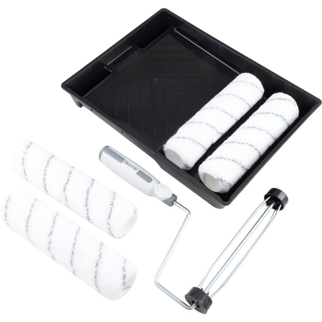 | Set Contents | 1 x 9in. Paint Tray | 1 x Roller Frame | 4 x Medium Pile Roller Sleeves |