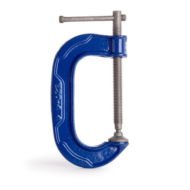 Eclipse E20-4 Heavy Duty G-Clamp 4 Inch / 100mm The Eclipse E20-4 has a whopping clamping force of 545kg (1200lbs). Its guaranteed unbreakable malleable iron frame with a fast action twin start rolled acme thread makes this model well and truly up to the task. The steel swivel shoe applies an even pressure, even on angled surfaces, whilst the tommy bar will bend before the frame can become over-stressed. Features: Acme thread Steel swivel shoe Guaranteed unbreakable for long-lasting use Malleable iron frame Specification: Clamping Capacity: 4" (100mm) Frame Proof Loads: 1200lbs / 545kg Weight: 1.5kg