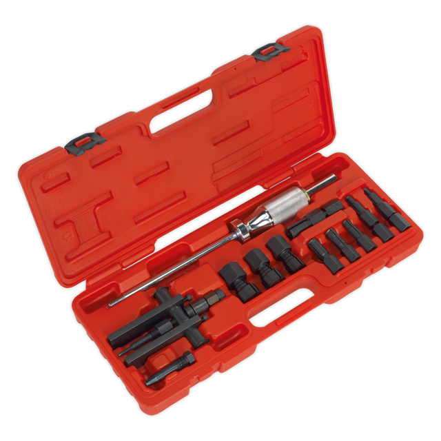 Medium stroke 1.5kg slide hammer with 395mm shaft and a screw type bridge extractor. Gently removes blind bearings where the use of a slide hammer may damage the surrounding material. Includes bearing extractor collets with internal capacity from 8 to 34mm.