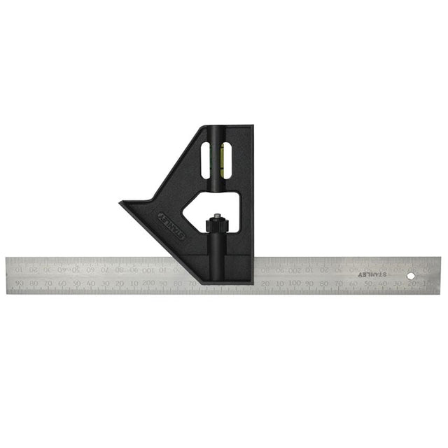 This Stanley Combination Square has an easy to read long lasting engraved blade, 300mm (12in), marked metric and imperial for easy use. It has a 360-degree vial for allround visibility.This versatile square can be used as a try and mitre square, depth or height gauge and spirit level. It has a lightweight and durable metal body with 3 machined faces and a scriber fitted for accuracy and convenience. The heel is synthetic for light weight.Specification: Length: 300mm (12in).