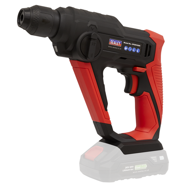 Powerful, lightweight cordless rotary hammer drill. Durable composite housing with soft grip for added comfort. SDS Plus chuck. Two drilling functions, rotary and rotary with hammer. Built-in LED work light. Forward, reverse and trigger lock. Variable speed trigger for greater control. Package includes: Model No. - Description CP20VSDS - Rotary Hammer Drill 20V SDS Plus - Body Only CP20VBP2 - Power Tool Battery 20V 2Ah Lithium-ion for CP20V Series (x1) CP20VMC - Battery Charger 20V Lithium-ion for CP20V Series CP1200CB - Canvas Tool Storage Bag You may also refer to the individual Model No. for full specification.
