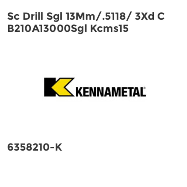 Sc Drill Sgl 13Mm/.5118/ 3Xd C B210A13000Sgl Kcms15