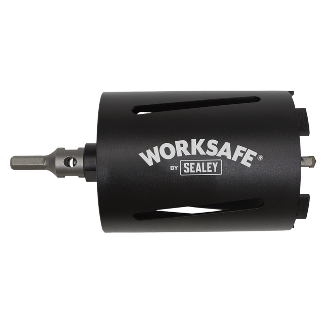 Supplied with hex drive adaptor for matched balance and extractor drift. Thick wall body with multi slot extraction and 8mm high diamond segments. High speed drilling when used on lightweight building material such as; soft stone, facing bricks, breeze blocks and insulation blocks. (Not suitable for reinforced or non-reinforced concrete.) For dry drilling only. Supplied with integral hex shanks.