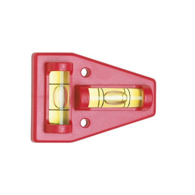 Red, impact-resistant plastic level with 2 right-angled vials. Ideal for checking the incline of 2 horizontal surfaces simultaneously. Made from ABS plastic which makes the level both light and durable. The tube vials are made of Plexiglas.