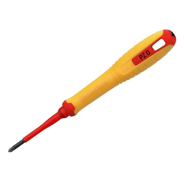 The Hultafors Pozidriv VDE Screwdriver comes with insulated high-quality, hardened steel blade for working on electrical installations up to 1,000 V. Developed for professional use together with craftsmen. Each screwdriver is tested and certified according to IEC 60900.Fitted with a durable PPC plastic handle with a coating of age-resistant and easy-to-grip rubber. This long rubber-coated handle ensures grip for precision and maximal transmission of power. Permanent marking of type and size on the top makes it easy for the user to select the right screwdriver. The handles design prevents the screwdriver from rolling on inclined surfaces. There is also a hole in the handle for hanging or securing. Sizes PZ1 and PZ2 have an extra narrow blade for better access in confined spaces.