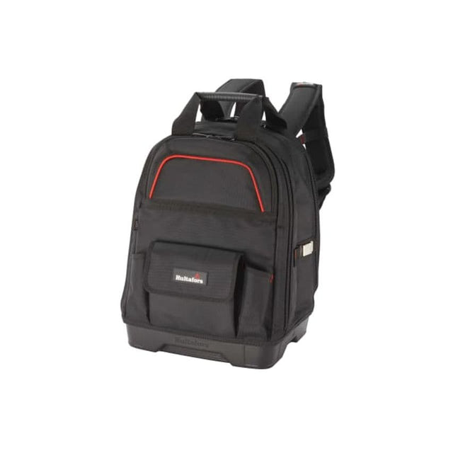 The Hultafors Moulded Base Tool Backpack offers the ultimate combination of comfort and practicality. It has 42 pockets and tool holders, including a metal clip for measuring tapes and a water bottle pocket. There are also two main zippered compartments with additional laptop/tablet sleeve. Made from extremely durable ballistic polyester, 1680 Denier. Ergonomically designed 3D-shaped padded shoulder straps ensure maximum comfort. The protective moulded base provides a stable platform. Designed and tested in Sweden in extreme conditions of up to -20C for unbeatable durability.