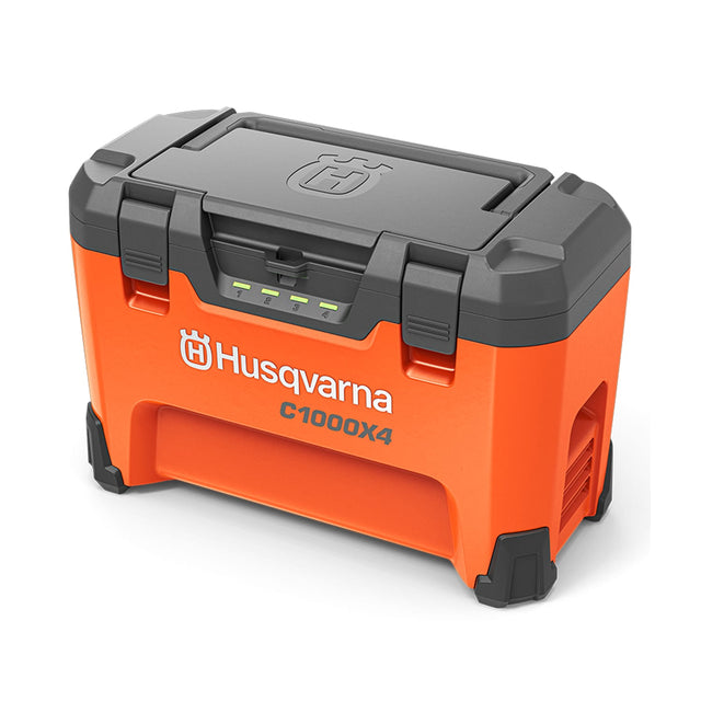 This 600W high-power and well-balanced battery charger allows up to four x Husqvarna B, BLi and BLi-X Series 36V li-ion batteries to be smartly loaded into one convenient charging/storage/transport box thanks to its smart load ergonomic design. All loaded batteries are charged fast and efficiently for high uptime; theres even convenient LED indicators on the exterior of the box that provide an easy overview at a glance of the charging status. The compact of the 40-C1000X4 makes it easy to transport, carry and store, while the multi-rack charging system offers an all-in-one setup for time-saving handling of batteries.