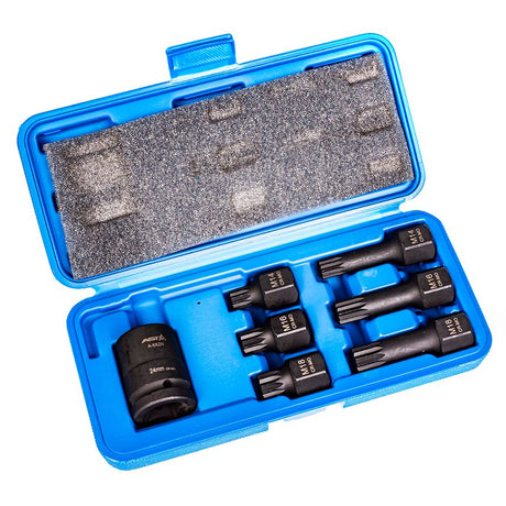 Impact Spline Socket Bit XZN 7pc Set 1/2" with Adapter for 3/4" Square Drive
