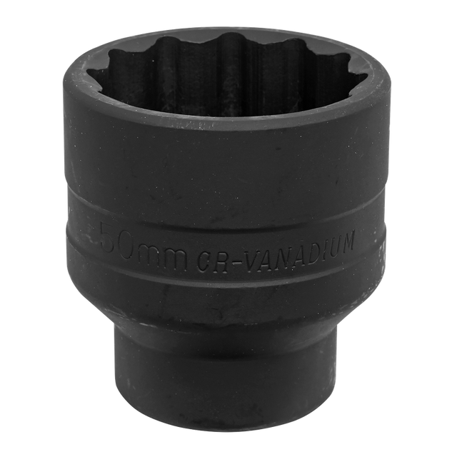 Forged and heat treated Chrome Vanadium steel impact grade bi-hex socket, chemically blackened for corrosion resistance. Malleable steel material makes the socket suitable for use with either hand ratchet wrenches or air impact wrenches.