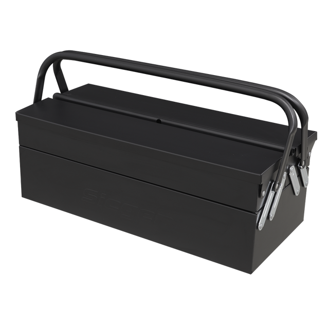 Housed in a metal, cantilever toolbox.