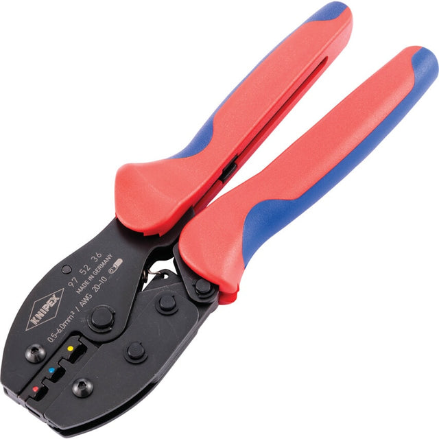 Designed for multi-purpose use for crimping insulated cable lugs, plug connectors and butt connectors of between 0.5 and 6.0 mm, these PreciForce crimping pliers are ideal for repetitive and accurate working. The product boasts optimum transmission of force, superb handling due to the lightweight, ergonomic design and has a robust construction from specially selected high quality chrome vanadium electric steel.