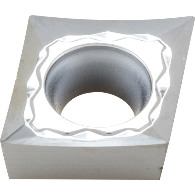 CCMT turning inserts are 80 rhombic shaped inserts. with a single-sided, 7 positive relief angle for semi-finish and finish cutting. "M" tolerance edge condition for general with chip breaking in moderate feed range. Their positive rake and low cutting forces make them ideal for use on a wide range of materials, including non-ferrous and exotic alloys.