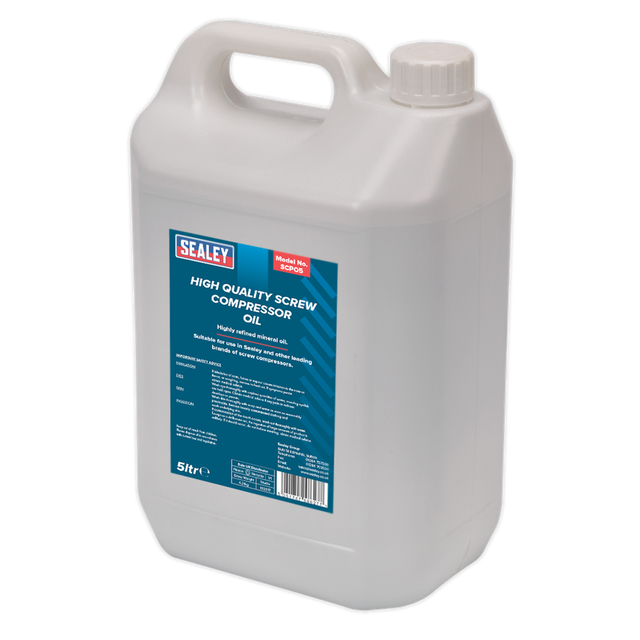 Highly refined mineral oil suitable for use in Sealey and other leading brands of screw compressors. Supplied in 5 litre container. Screw Compressor oil must be changed at least once a year.
