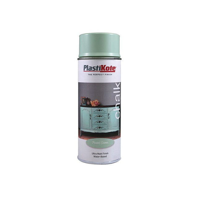 PlastiKote Chalk Spray is a chalk-effect spray for decoration, furnishing, design, restoration or interior fittings. Can be used on virtually any surface, especially on wooden furniture. Creates an ultra-matt finish. It has a water-based formula that is environmentally friendly and is odour free. Suitable for interior and exterior use. The product can be sanded and washed back from 10 minutes after application to create a rustic look. PlastiKote gold and silver leaf paints can also be used underneath the chalk spray to create wonderful furniture effects. Coverage: Up to 1.4m per 400ml.