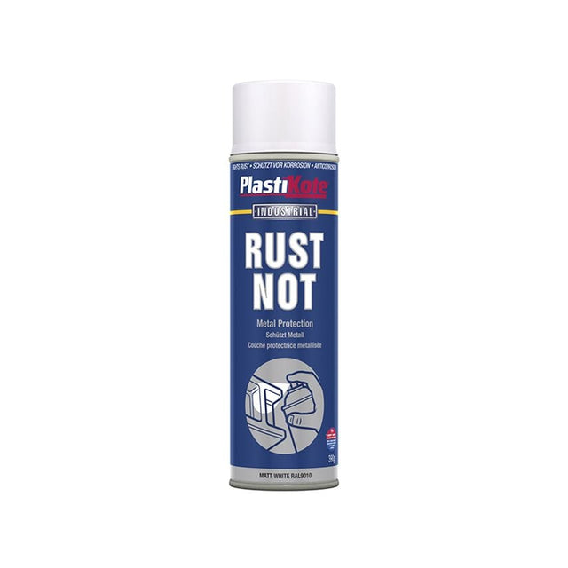 The PlastiKote Rust Not Spray Paint is formulated for maximum rust protection and provides a hard-wearing, durable finish. It penetrates the metal's surface to form a permanent bond that is impact resistant and will not peel, flake, or fade for years. The formula is quick drying and can be recoated at any time. Drying time: touch dry in 10 - 20 minutes, thoroughly dry in 30 - 40 minutes. Coverage: Approx. 2.6m per can.