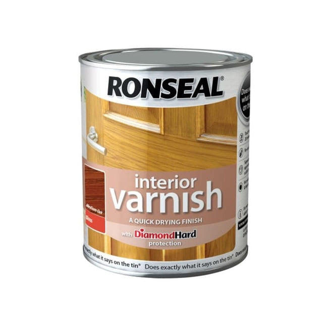 Ronseal Interior Varnish is a quick drying varnish with Diamond Hard protection. It delivers superior protection against heat, scratches and water. Quick drying, touch dry in 20 minutes. Recoat after 2 hours. Protects all interior wood with a beautiful fade resistant finish. Available in Satin, Gloss and Matt.