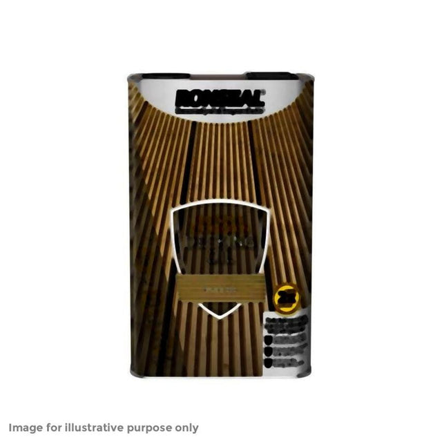 Ronseal Ultimate Protection Decking Oil provides superior, natural looking protection, for a longer lasting finish. The unique formula penetrates deeper into the wood to provide increased durability. Providing a lightly tinted finish it will give double the weather resistance and foot traffic protection versus standard decking oils. Unique, new to the market, water-based Linseed Oil technology, colours and waterproofs your deck in one easy step. Gives a more natural look to your deck and is rainproof in 90 minutes, recoat in 4 hours. Primarily for use on pre-treated decking. Preparation - Untreated, weathered decking: For untreated grey and weathered wood, use Ronseal Decking Restorer to restore the deck's natural colour and provide a sound base for application which ensures the oil penetrates effectively. Previously finished decking: Use Ronseal Decking Cleaner and Reviver to remove any dust, grease, oil, mildew, algae and other contaminants. Remove any loose, flaking or peeling coatings. To avoid patchiness, and if using a contrasting colour, make sure you remove all previous finishes using Ronseal Decking Stripper. Ensure cut ends are adequately protected using Ronseal Decking End Grain Preserver. New wood: New decking should be allowed to weather naturally (usually 6 months). This will make sure any pre-treatment has eroded allowing the stain to penetrate and adhere to the deck. Clean the deck with Ronseal Decking Cleaner and Reviver using a scrubbing brush to open the pores of the wood and remove any contamination from the manufacture of the timber. Rinse thoroughly with clean water ideally using a pressure washer. Allow to dry fully before over coating. Test effectiveness of the cleaning by splashing the deck with water. If beading occurs, re-clean. Retest before applying any oil. The shade label indicates approximate colour only. It is recommended that you test a small area to determine the final colour which may be influenced by the texture, grain, colour, porosity, type of wood and any previous treatment.
