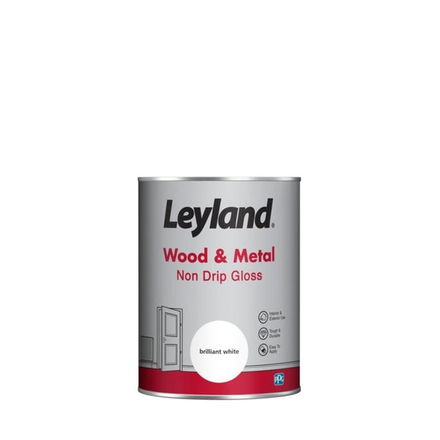 Leyland Wood & Metal Non Drip Gloss 1.25L Brilliant White Leyland Wood & Metal Non Drip Gloss is an easy to use, tough and durable high sheen paint. It is specially formulated for use on both interior and exterior wood and metal. Dry time: 16-24 hours. Coverage: up to 14m (per litre)