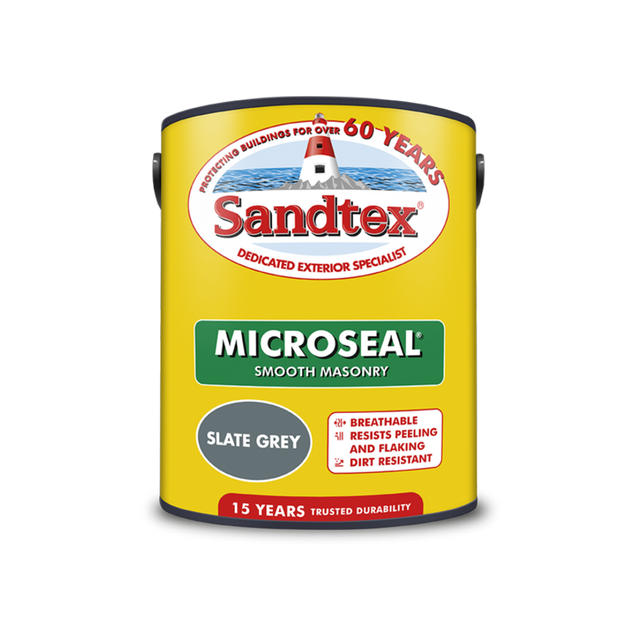 Sandtex Smooth Masonry 5L Slate Grey Microseal technology, masonry paint ensures that surfaces are dirt resistant, breathable and waterproof for flawless coverage and protection for longer