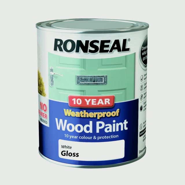 Ronseal 10 Year Weatherproof Gloss Wood Paint 750ml White 10 Year Protection No primer needed Weatherproof in 1 hour Won't crack peel or blister Can be used on all exterior wood