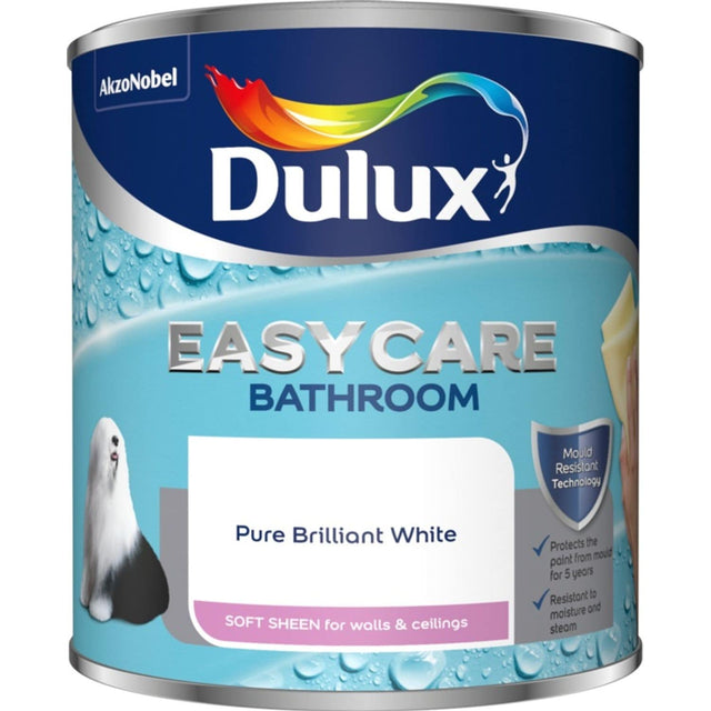 Dulux Easycare Bathroom Soft Sheen 2.5L Pure Brilliant White Dulux Easycare Bathroom Soft Sheen is an exceptionally tough moisture and steam resistant paint Independent laboratory testing has shown that the MouldTec formulation protects the paint against mould for five years, keeping your bathroom looking great for longer