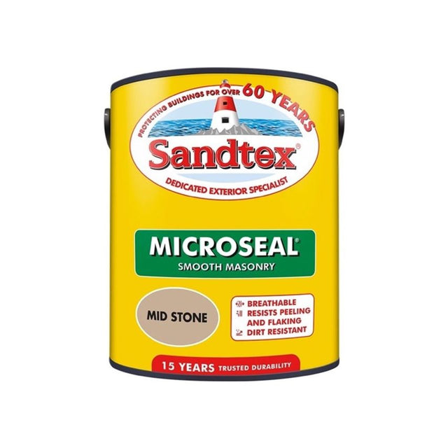 Sandtex Smooth Masonry 5L Mid Stone Microseal technology, masonry paint ensures that surfaces are dirt resistant, breathable and waterproof for flawless coverage and protection for longer