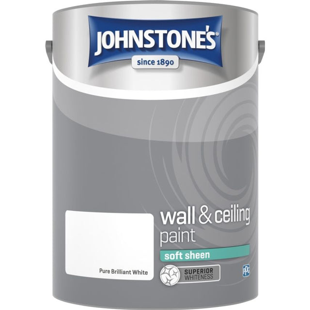 Johnstone's Wall & Ceiling Soft Sheen 5L Brilliant White Johnstone's premium quality emulsions for walls and ceilings are available in a wide range of exciting colours in a choice of matt, silk or soft sheen finishes Matt - Provides a smooth, rich and non-reflective finish, perfect for hiding surface imperfections Coverage: 13m2 (metres squared per litre) Touch dry: 1-2hrs Silk _ an attractive high sheen paint with light reflecting properties, making it the ideal choice if you want to make a room look bigger Coverage: 12m2 (metres squared per litre) Touch dry: 1-2hrs Soft Sheen _ a more contemporary and subtle finish to silk, great for walls and ceilings where a satin finish is required Coverage: 12m2 (metres squared per litre) Touch dry: 1-2hrs