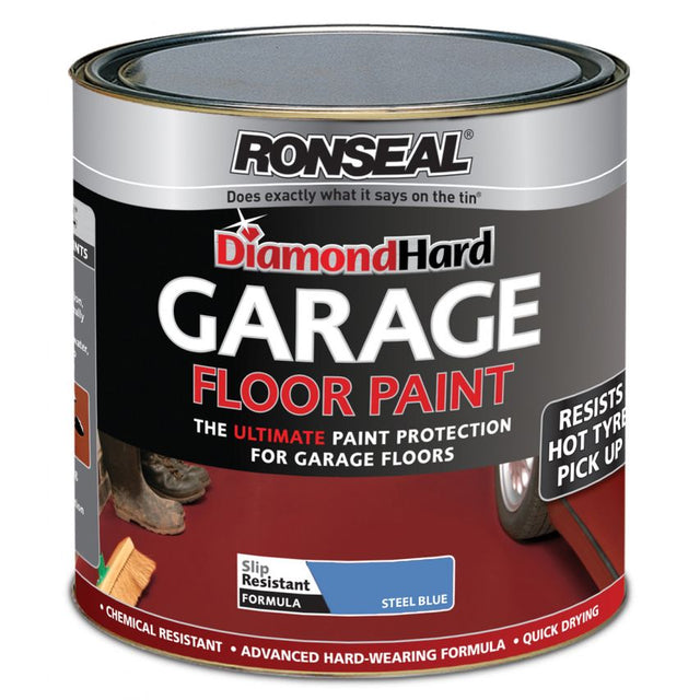 Ronseal Diamond Hard Garage Floor Paint 2.5L Blue Use on concrete or stone floors Protects against oil, grease & petrol spills Won't scuff or scratch