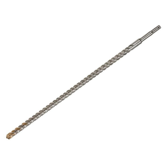 The IRWIN Speedhammer Quad Drill Bit is ideal for drilling plug and anchor holes in masonry, all types of stone and concrete. Its 4-cutter geometry, drills a more concentric hole for the best fixing retention. The full head carbide tip offers the highest levels of drilling life and durability. A unique bonding system connects the solid carbide head to the 4-flute spiral. This design provides faster, more efficient dust removal. The specially engineered grooves are designed to minimise friction, resulting in increased speed and longer life. Manufactured in Germany with premium steel. Meets PGM standards for drill bits used for anchor fixing.
