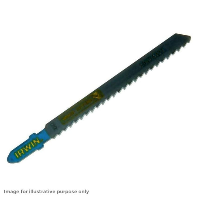 These Irwin Wood Jigsaw Blades are made from Carbon steel for use in softer materials such as wood, laminated chipboard, and plastics. They have 3 Sided, fleam ground teeth for fast cut and clean finishes in all wood applications. T Shank for AEG, Bosch, DEWALT and Hitachi Jigsaws.