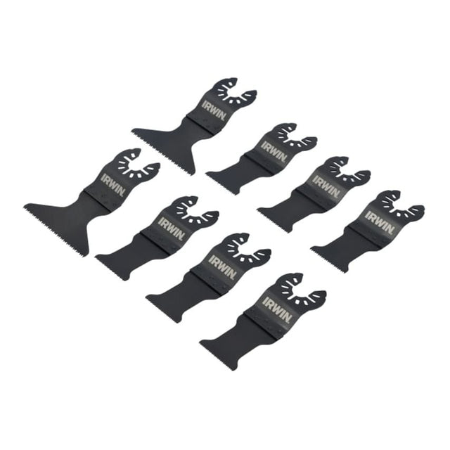 IRWIN 8 Piece Oscillating Blade Set. Suitable for cutting a range of common materials; wood, plasterboard, PVC and nail embedded wood. Ideal for use on renovation jobs. Contains: 3 x Oscillating Blades 30 x 43mm x 18 TPI.2 x Oscillating Blades 30 x 66mm x 15 TPI.3 x Oscillating Blades 30 x 43mm x 20 TPI.