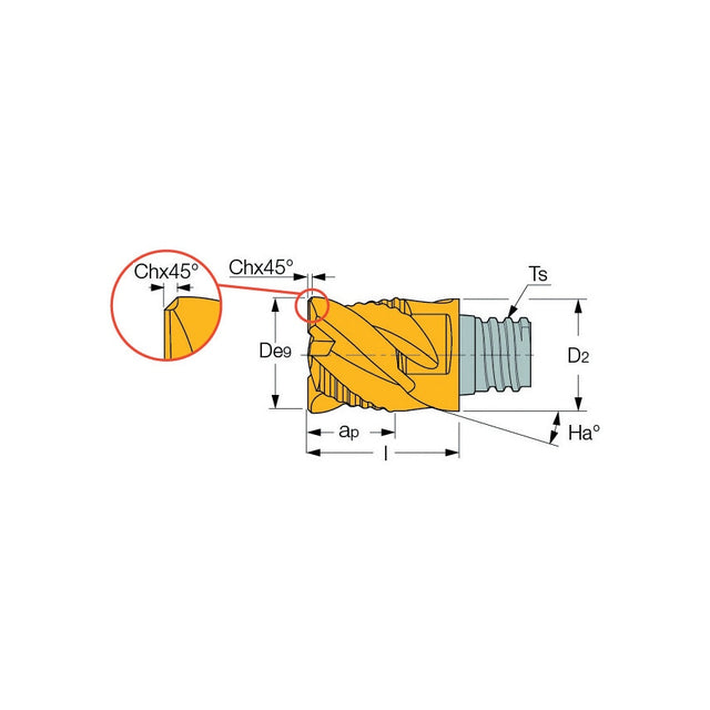 FINISHED, combination of roughing and finishing interchangeable solid carbide endmill heads.
