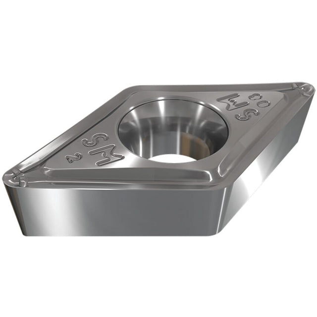 DCMT 55 rhombic turning inserts feature a 7 positive flank inserts used for semi-finishing and finish turning. Chip breaking in moderate feed range with a positive rake, low cutting forces and ideal for a wide range of materials. Features and Benefits A cermet grade, TiCN & TiN PVD coated for added durability Ideal for high speed semi-finishing and finishing applications Provides an excellent surface finish Wear resistant preventing built up edge Specifications Insert Grade IC530N ISO Range - (P10-P30)(M10-M20) Grade or Coating Type: PVD Coating Layers: TiCN+TiN Typical Applications Finishing Semi-finishing