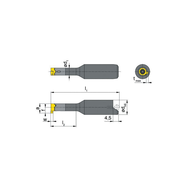 B108 With through coolant supply Can be used in right and left hand inserts Material of shank: Carbide - Giving a good vibration resistance Bore from .315 (8.0 mm) Depth of groove up to .039 (1.0 mm) Width of groove up to .079 (2.0 mm)