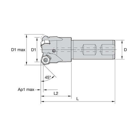 10D1R032B16SSD09 Face Mill 45 SD..09 Shank D 1