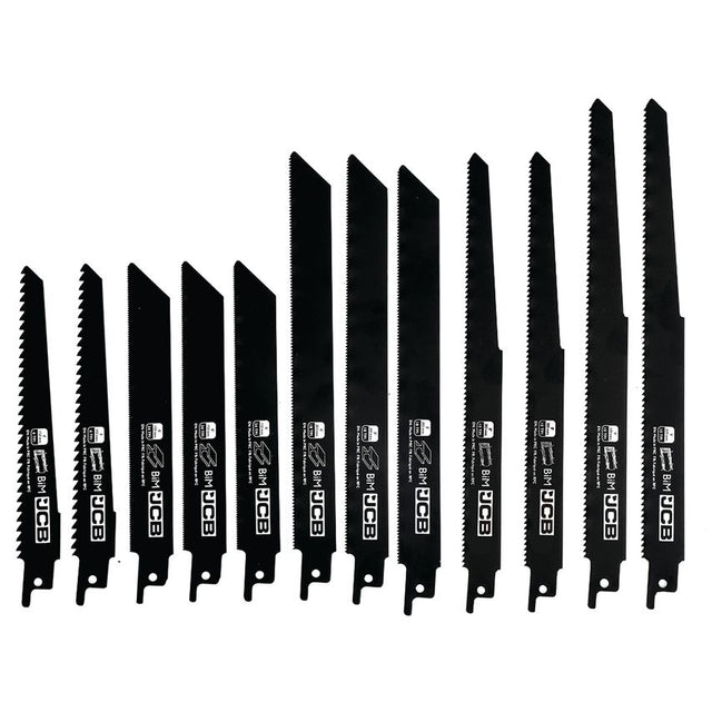 JCB 12 piece reciprocating saw blade set suitable for use on a variety of materials.Universal fitting, compatible with most branded reciprocating sawsSuitable for cutting wood, metal and plastics Variety of coarse and fine cut blades for multiple applications