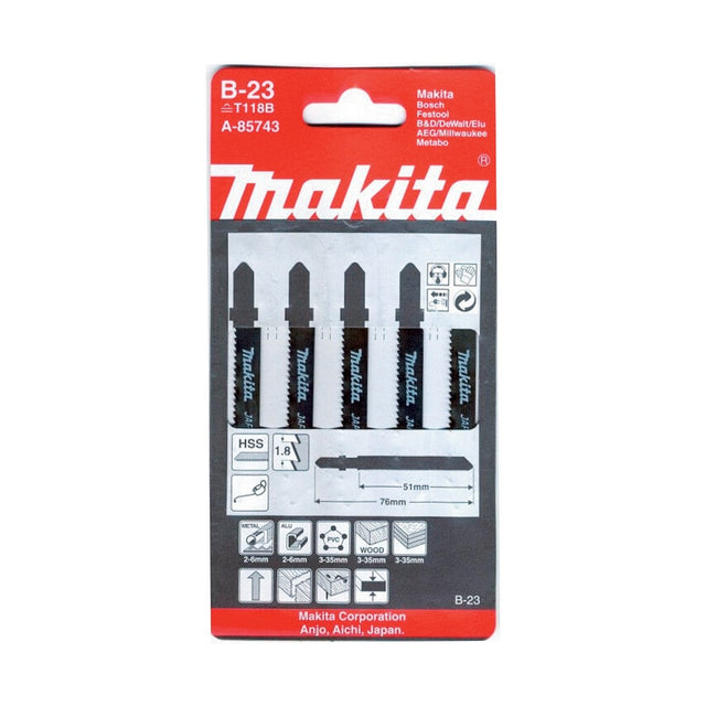 A85743 B23 Blade for mild steel, wood, decorative veneers, non-ferrous. Working length 50mm x 14TPI (T118B). Pack of 5.
