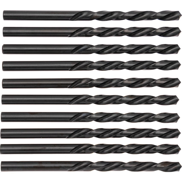 Note : This is sold as single.A100 Series HSS Straight Shank Jobber Drills (Metric) general purpose drills are manufactured from durable high speed steel with a black oxide steam tempered coating for improved chip flow and heat resistance. Features and Benefits High speed steel construction for greater durability Black oxide steam tempered finish for improved chip flow and heat resistance Suitable for use on a range of metals including steel and grey cast iron Specifications High speed steel Steam temepered black oxide finish Point angle: 118 Helix angle: normal Web thickness: standard Relief angle: 10 - 20 Tolerance of diameter: h8 Tolerance of shank: f11 Black finish (W-Finish) BS 328/DIN338RN Typical Applications Steels Cast steel Grey cast iron Malleable cast iron Nickel brass Aluminium alloy Graphite