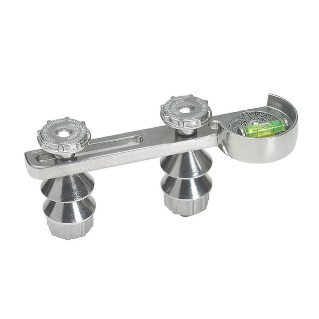 A versatile tool that can be used as a dial degree utility level or, with attachments, for two holding flange alignment. ,Constructed of cast aluminium with a protective housing containing an adjustable dial set level (DSL). ,Fitted with a threaded, self-aligning conical spacer and conical nut and bolt units for fastening the Level to a pipe flange ,One of the nut and bold units is stationary, while the other slides up to 5-1/2" along a slot in the level to accommodate various flange bolt hold spacings from 2" to 5-1/2" ,Non-magnetic and can be used on PVC pipe. Designed with one stationary nut and one that slides up to 5.5 inches.
