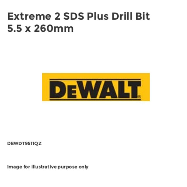 DEWALT SDS Plus EXTREME 2Drill Bits are made from superior carbide grade for long life and greater durability. The hardened body adds further strength and helps to reduce breakage. Its optimised flute design provides efficient debris removal whilst the tip design ensures better bit penetration.