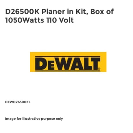 Low stock (10 units)£934.99Unit price /UnavailableD26500K Planer in Kit, Box of 1050Watts 110 Volt DEWD26500KL