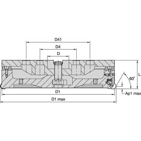 125B123RF60HN09CA2 Hexacut 60 Shell Mill D=125 Z=12+3