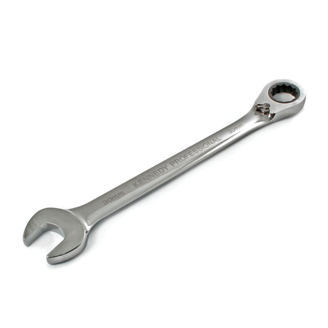 This range of metric combination ratchet spanners are the deal tool for professional trades-people. With a bi-hexagonal 15 degree offset ring possessing a 72 teeth lever ratcheting system that requires only 5 degree movement to operate, they are ideal for use in tight areas. Made from high quality Chrome Vanadium Steel with mirror polish finish to prevent oil and dirt from adhering to the spanner. Available in an array of sizes.